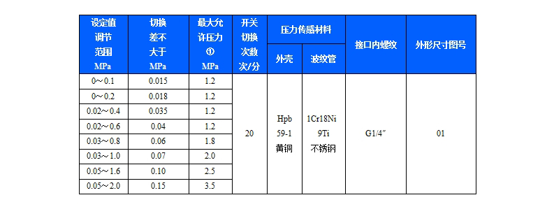 規(guī)格:切換差可調(diào)(雙斷點(diǎn)橋微動(dòng)開關(guān))
