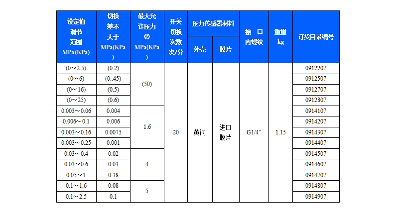 規(guī)格:切換差不可調(diào)
