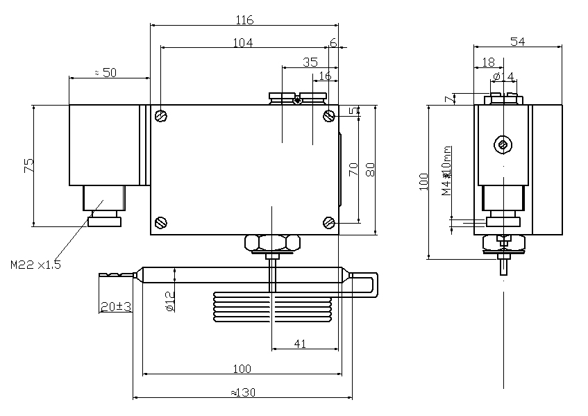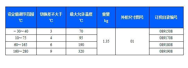 541/7TZ雙觸點溫度開關采用毛細管溫包式傳感器,可用于流動的中性氣體和液體介質。如果介質為腐蝕性,安裝時可選用不銹鋼溫包保護套套在銅質溫包外,541/7TZ雙觸點溫度開關的設定值可調,調節范圍-30~280℃。