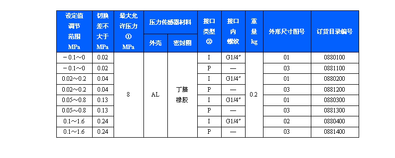 規格:500/18D壓力控制器切換差不可調